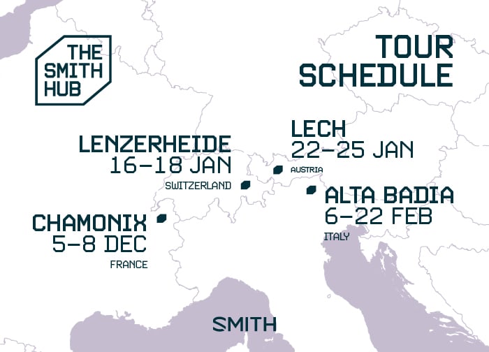 Get ready for an epic winter adventure! The Smith Hub and Mountain Hub are hitting the slopes across the European central Alps. Check out the map for all the stages, locations, and dates—and join us for an unforgettable ride on snow!